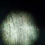 Estas son varias muestras de quistes de triquina fotografiados en el microscopio de la clínica de una muestra de jabalí. Aunque no es muy frecuente localizarlos, es para comentaros que es muy importante no bajar la guardia, por que las lesiones que produce la triquina en humanos son importantes y pueden poner en peligro la vida de una persona.